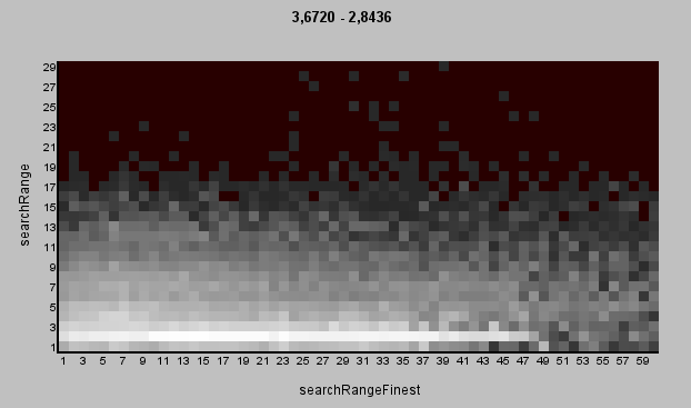 2.7766657 in 214080 iterations Let's get back to those top 3 results. There are again parameters with the same value in all three and we can probably try some tighter search ranges as well. Code: