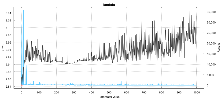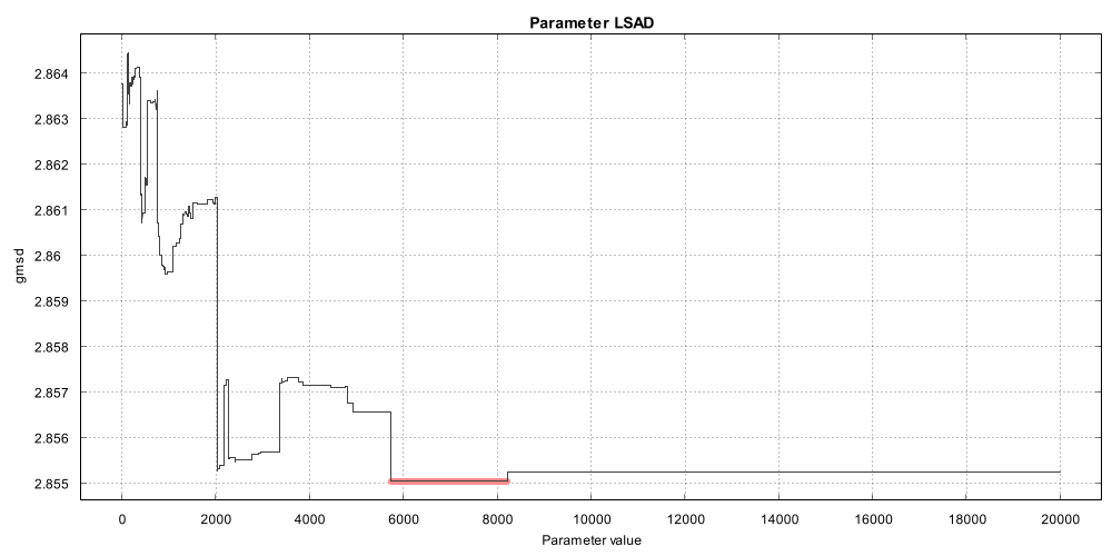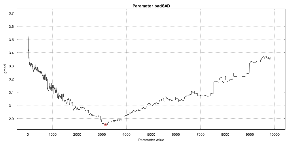I wanted to get something running quickly so I used an old template I had which doesn't have all the parameters of MAnalyse. Notably levels, pzero, pglobal, dct and scaleCSAD are missing. I will add those in the coming runs. I used the GMSD metric as I know from experience that it's more sensitive than SSIM. MDSI might be good also but GMSD is a bit more convenient to use as it doesn't need RGB clips. I started with five relatively short runs (10 000 iterations each) to see how consistent the results are. If they are it's a good sign that the search is long enough. That's not the case here though. Code: