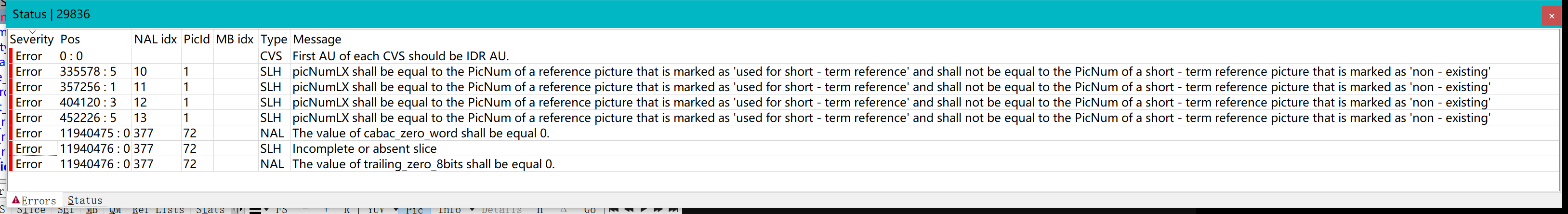 But I know how to detect it: ffmpeg -v warning -i sample.m4v -map 0 -map -0:s -f null NUL (this only works for the origin container, not for the sample slice ...) If anybody know a more reliable/sensitive way to detect these errors/artifacts, feel free to tell me. |